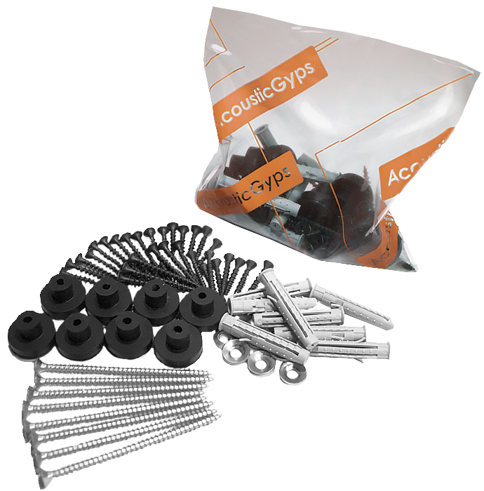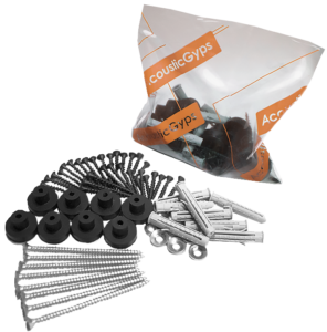 It is intended for mounting sound-insulating sandwich panels AcousticGyps Basic 70 on walls, partitions, and ceilings. The main component of the kit is a rubber-based insulator of special shape designed to prevent the transmission of sound waves from the bearing structure to the outer surface of the panel.