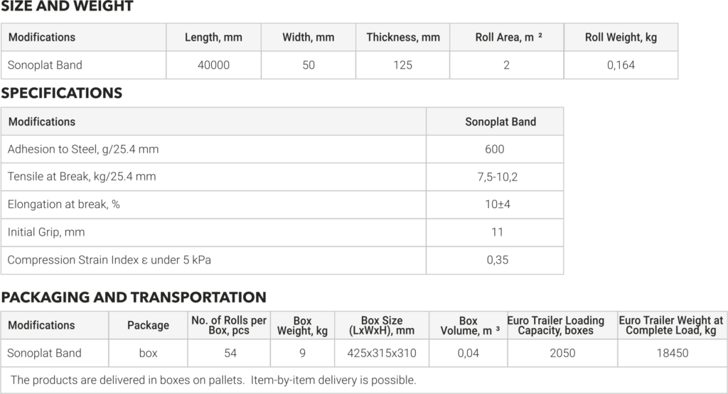 Sonoplat Band is a special-purpose self-adhesive band based on crepe paper. The product is used in soundproofing SonoPlat systems. The adhesive layer exhibits fine adhesion properties.